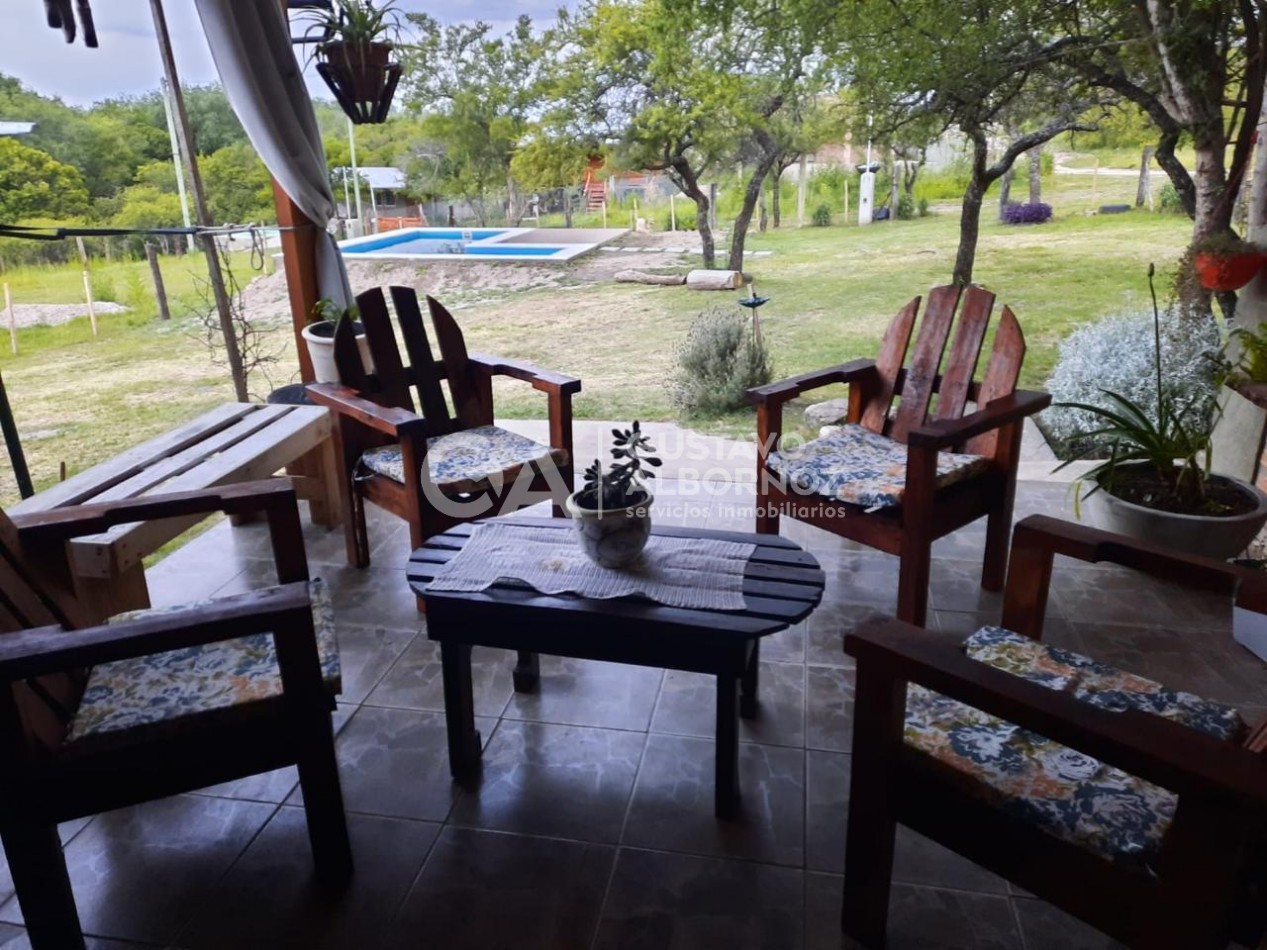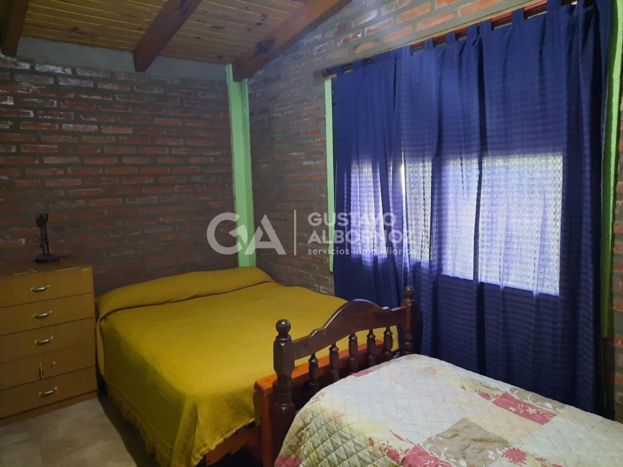 La casa cuenta con dos cómodas habitaciones, baño completo, cocina integrada al comedor y espacios pensados para el disfrute diario. En el exterior, se destaca una amplia galería, cochera, piscina y un gran jardín, todo sobre un lote de 675 m², ofreciendo múltiples posibilidades de uso y expansión.